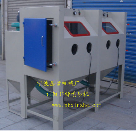 手動(dòng)噴砂機(jī),雙工位手動(dòng)噴砂機(jī),非標(biāo)定做手動(dòng)噴砂機(jī),此噴砂機(jī)為定做非標(biāo)噴砂機(jī),一般適合于各種大中型紅木去毛刺處理,模具表面處理,墓碑刻字等工藝,根據(jù)顧客的不同要求定做噴砂機(jī),歡迎咨詢。